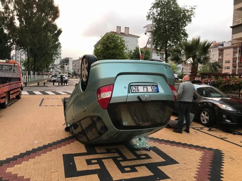 Samsun’da park halindeki araca çarpıp takla atan otomobilin sürüsü yaralandı.