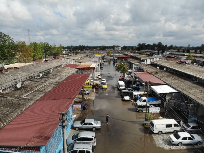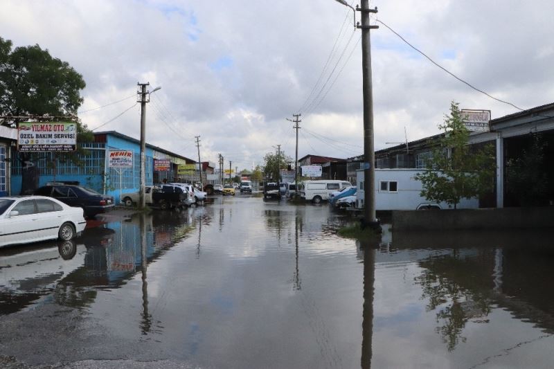 Samsun’un Çarşamba ve Terme ilçelerinde etkili olan sağanak yağış sonrasında sanayi sitesini su bastı, ırmakların debisi yükseldi.