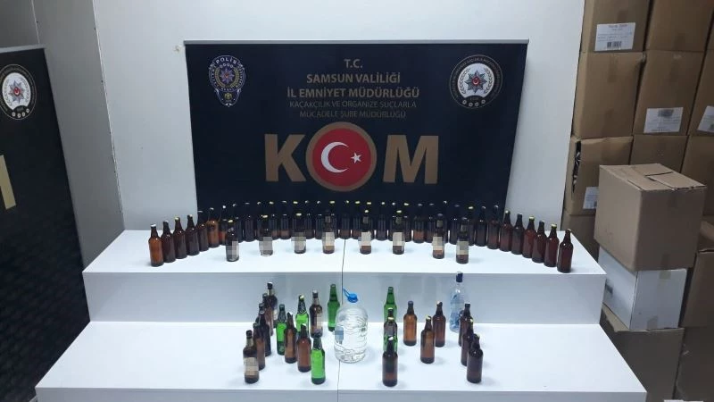 Samsun’da polisin düzenlediği operasyonda sahte içki ele geçirildi.