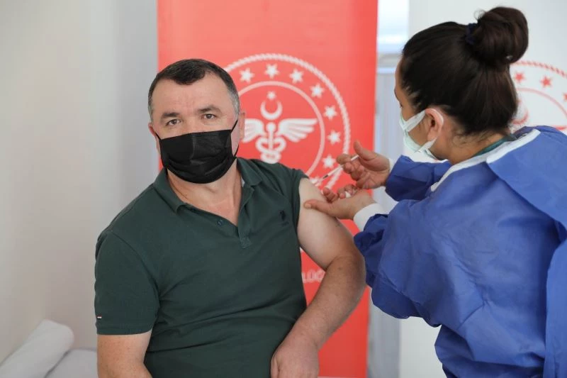 Samsun İl Sağlık Müdürlüğü tarafından Organize Sanayi Bölgesi’ne (OSB) kurulan mobil aşı merkezi ile fabrikalardan sırayla gelen işçiler aşılanıyor.