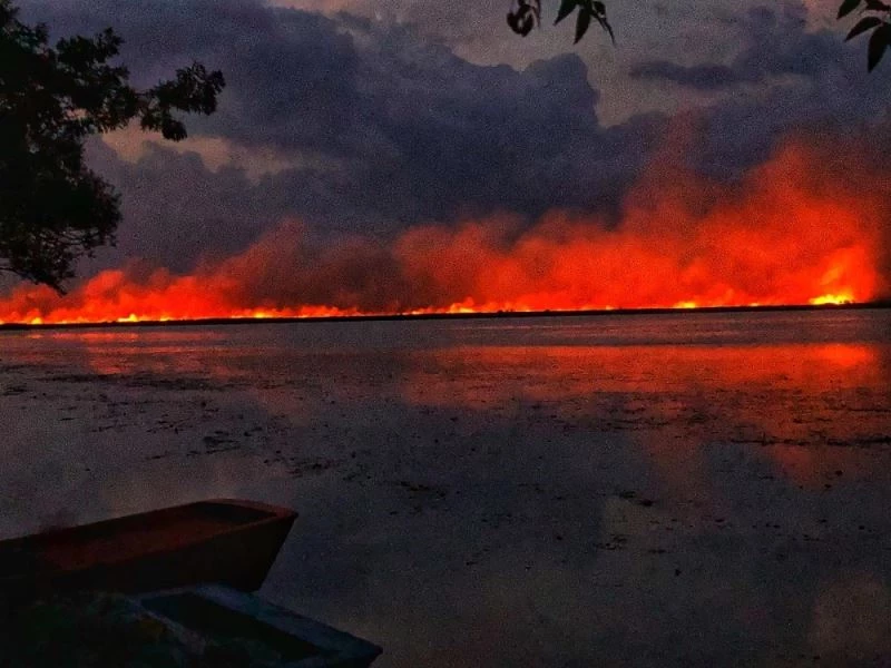 Alınan bilgiye göre, saat 18.00 sıralarında Terme’de koruma altındaki Akgöl ve Simenit Gölleri mevkisinde bulunan sazlık alanda henüz bilinmeyen nedenle yangın çıktı. Kısa sürede şiddetlenen yangın bölgedeki sazlık alanı küle çevirirken olayı görenler itfaiyeye ihbarda bulundu. Bölgeye sevk edilen itfaiye ekipleri yangın bölgesine ulaşım sağlayamazken, Terme Belediyesi ve Terme Orman Müdürlüğüne bağlı ekipler iş makineleriyle yangının önünü toprakla kesti. Geniş alana yayılan sazlık yangınında bir kısım bölgedeki ağaçlar kül olurken, telef olan hayvanların da olduğu bilgisine ulaşıldı. Rüzgar şiddetinin düşmemesi ve yangının büyümesi halinde bölgeye havadan yangın söndürme helikopteri ile müdahale edileceği öğrenildi.