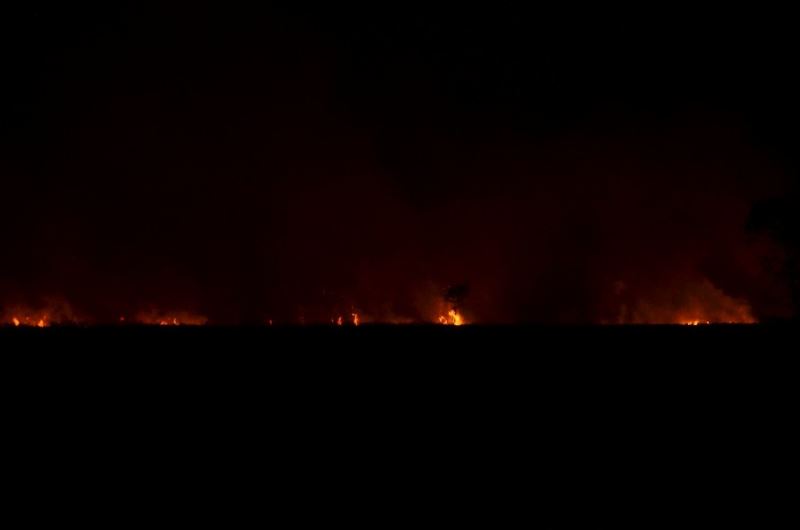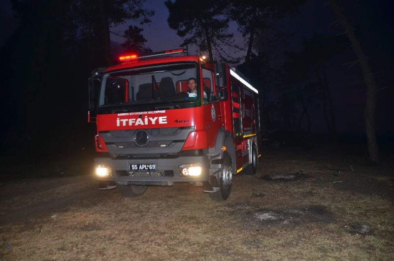 Samsun’un Terme ilçesindeki sazlık alanda başlayan yangın şiddetli rüzgar nedeniyle ormana sıçradı. Kontrol altına alınamayan yangının önü iş makineleriyle kapatıldı.