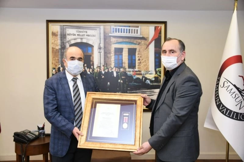 Samsun Valisi Dr. Zülkif Dağlı Cumhurbaşkanı Recep Tayyip Erdoğan tarafından tevdi edilen devlet övünç madalyası ve beratını, 2016 yılında Şırnak’ta PKK’ya yönelik operasyon sırasında şehit olan polis memuru Ersan Gürpınar’ın babası Yılmaz Gürpınar’a takdim etti.
