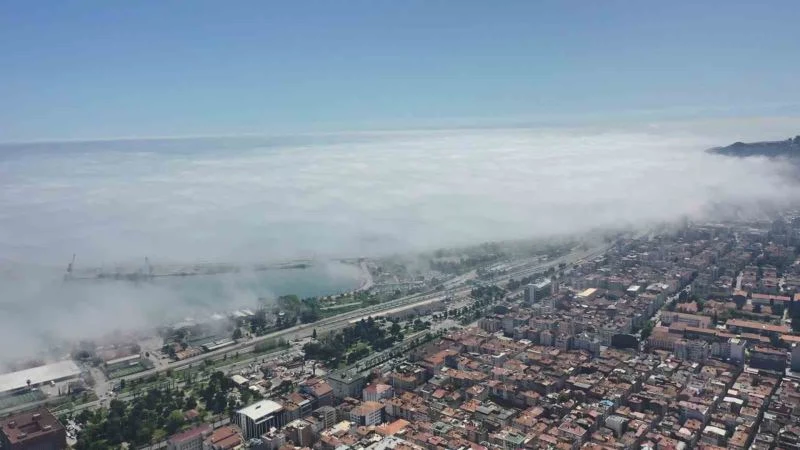 Samsun’da deniz suyu sıcaklığı ile hava sıcaklığının farklı olmasından dolayı sabah saatlerinde sis oluştu. Deniz tarafında oluşan oluşan sis havayı serinletti. Karadeniz’i ve sahilleri beyaz örtüyle kaplayan sis, dron ile havadan görüntülendi.