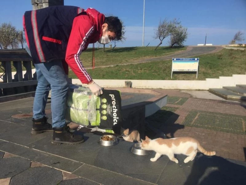 Samsun Büyükşehir Belediyesi, hafta sonu sokağa çıkma kısıtlamaları nedeniyle şehrin belirli noktalarına sokak hayvanları için mama bıraktı.
