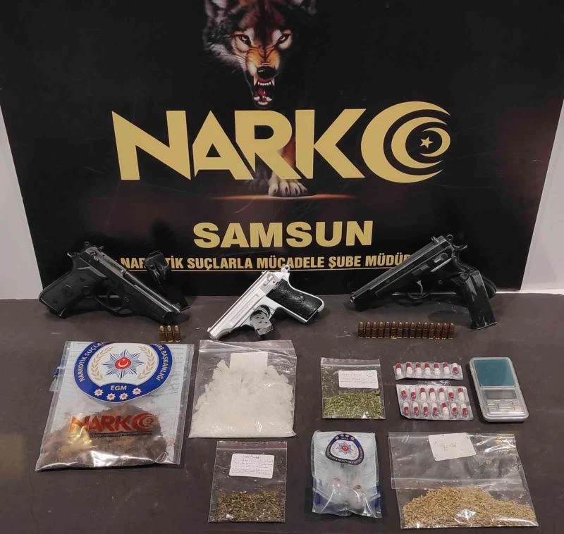 Edinilen bilgiye göre, Samsun Emniyet Müdürlüğü Narkotik Suçlarla Mücadele Şube Müdürlüğü ekipleri, sokak satıcılarına yönelik il merkezinde bu sabah operasyon düzenledi. Yapılan operasyonda 145,47 gram bonzai (sentetik kannabinoid) maddesi, 7,07 gram esrar maddesi, 513,75 gram metamfetamin maddesi, 17 kapsül sentetik ecza, 1 adet hassas terazi, 1 adet esrarlı sigara, 10 adet uyuşturucu içme aparatı, 3 adet 9 mm çapında tabanca ve 18 adet 9 mm çaplı dolu fişek ele geçirildi.