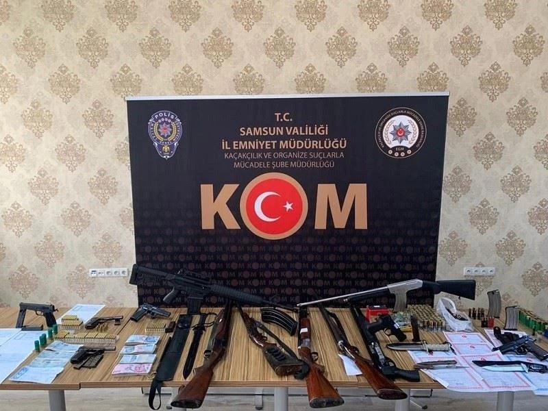 Samsun Valiliği tarafından konuyla ilgili yapılan açıklamada, “Samsun İl Emniyet Müdürlüğü Kaçakçılık ve Organize Suçlarla Mücadele Şube Müdürlüğümüzce tefecilik suç soruşturması kapsamında yapılan çalışmada; ilimiz Çarşamba ilçesinde bu sabah KOM, Narkotik, Asayiş, Çevik Kuvvet, Özel Harekat ve Çarşamba İlçe Emniyet Müdürlüğü personellerince gerçekleştirilen eş zamanlı operasyon neticesinde yapılan ikamet ve iş yeri aramalarında; 5 adet değişik çaplarda ruhsatsız tabanca, 7 adet ruhsatsız tüfek, 2 adet kurusıkı tabanca, 288 adet değişik çaplarda tabanca fişeği, 37 adet tüfek kartuşu, 43 bin TL dosya kapsamında değerlendirilen para, 3 gram esrar, 6136 SKM kapsamında 1 adet kılıç ve 1 adet şiş, operasyon kapsamında değerlendirilen çok sayıda çek, senet, ajanda ve noter devir evrakları elde edilmiştir. Toplamda 17 şüpheli şahıs yakalanarak gerekli işlemlerine başlanmıştır” ifadeleri kullanıldı.