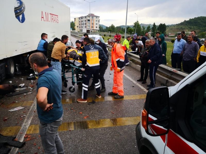 Samsun’da tırın kırmızı ışıkta bekleyen araçlara çarpması sonucu meydana gelen trafik kazasında 5 kişi yaralandı.