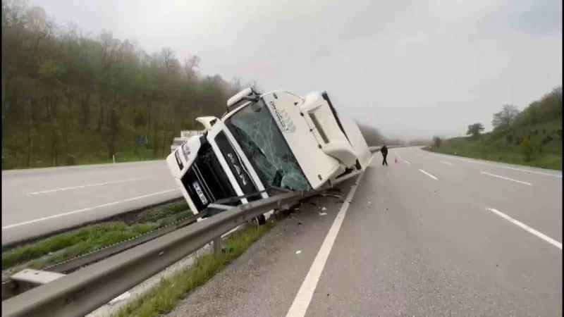 Samsun’da sürücüsünün direksiyon hakimiyetini kaybettiği tır devrildi. Kazada, 2 kişi yaralandı.
