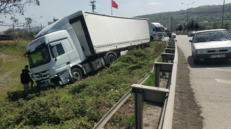 Kaza, Samsun’un Canik ilçesi Çevre Yolu üzerinde meydana geldi. Edinilen bilgiye göre, Ordu’nun Fatsa ilçesinden yüklediği 23 ton kedi kumunu İzmir’e götüren Serkan G. idaresindeki 55 ADH 902 plakalı tır Samsun’da virajda direksiyon hakimiyetinin kaybedilmesi sonucu yoldan çıkarak bariyerlere çarpıp şarampolde durdu. Kazada yaralanan olmazken, tırın bu sırada başka araçlara çarpmaması muhtemel bir faciayı önledi.