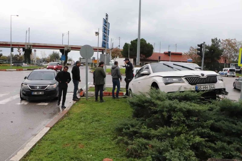 Samsun’da 2 otomobilin karıştığı trafik kazasında bir araç refüje çıkarak elektrik panelini yıktı.