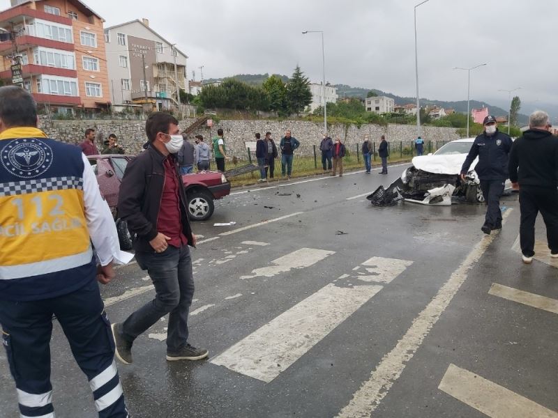 Kaza, Samsun-Sinop karayolu Yakakent Kavşağı’nda meydana geldi. Edinilen bilgiye göre, Sinop istikametine seyir halinde olan Mustafa Olgun idaresindeki otomobil ile Yakakent’ten kara yoluna çıkan Murat Ortaç’ın kullandığı otomobil kavşakta çarpıştı. Kazada sürücüler ile otomobillerde bulunan 3 kişi yaralandı.