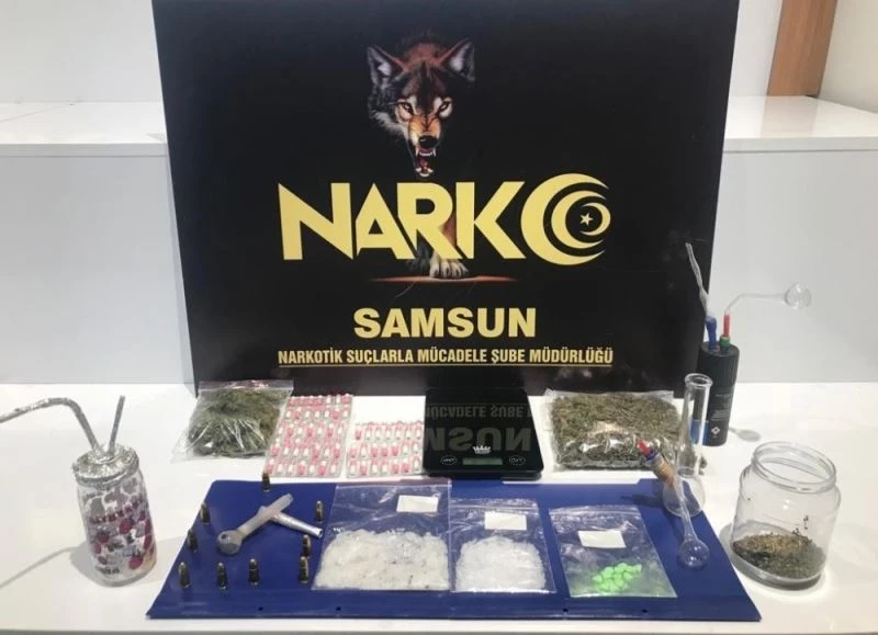 Edinilen bilgiye göre, Samsun Emniyet Müdürlüğü Narkotik Suçlarla Mücadele Şube Müdürlüğü ekipleri sokak satıcılarına yönelik yapılan çalışmalar kapsamında tespit edilen şahısların yakalanması amacıyla bu sabah Samsun il merkezi, Bafra ve 19 Mayıs ilçelerinde eş zamanlı operasyon düzenledi. Olayla ilgili 11 kişi yakalanarak gözaltına alındı. Şüpheli şahıslarla bağlantılı olarak ve operasyon esnasında yapılan aramalarda, 216,22 gram esrar maddesi, 10 adet extacy hap, 37,85 gram metamfetamin maddesi, 96 adet sentetik ecza hap, 1 adet hassas terazi, 6 gram kenevir tohumu, 6 adet uyuşturucu içme aparatı ve 9 adet 9 mm çapında dolu fişek elde edildi. Olayla ilgili soruşturma devam ediyor.