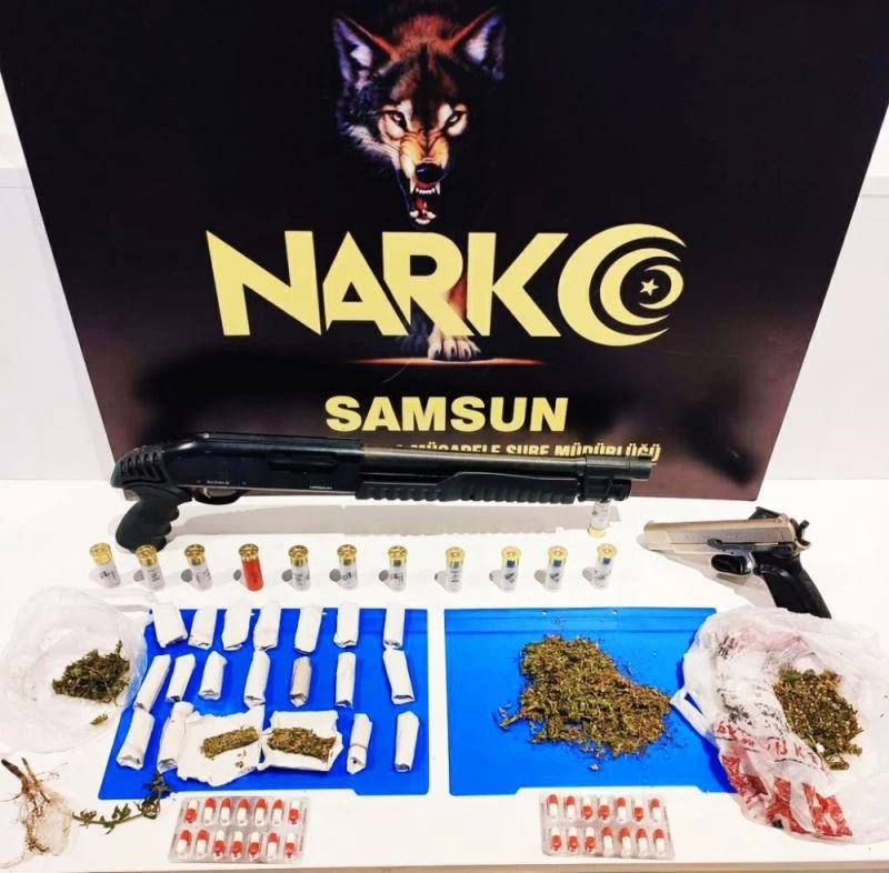 Olay, Samsun’un İlkadım ilçesi Uzgur Mahallesi’nde meydana geldi. Edinilen bilgiye göre, Samsun Emniyet Müdürlüğü Narkotik Suçlarla Mücadele Şube Müdürlüğü ekipleri yaptıkları istihbari çalışmalar doğrultusunda müşterek hareket ederek irtibatlı oldukları şahıslara uyuşturucu madde satışı yaptığı bilgisi edinilen G.G. ve karısı Ö.G.’nin evlerine ve araçlarına operasyon düzenledi. Gözaltına alınan şahısların adreslerinde ve araçlarında yapılan aramalarda, satışa hazır 20 paket halinde 18,76 gram esrar maddesi, 3 paket halinde 45 gram esrar maddesi,31 kapsül sentetik ecza, 1 kök dişi Hint kenevir bitkisi, uyuşturucu madde paketlemek için kullanıldığı değerlendirilen 1 adet makas ve çok sayıda kağıt parçaları, 1 adet kurusıkı tabanca, 1 adet pompalı tüfek, 11 adet tüfek kartuşu ve uyuşturucu madde satışından elde edildiği değerlendirilen 405 TL para ele geçirildi.