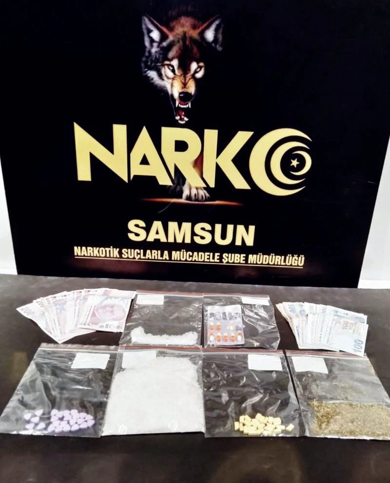 Olay, Samsun’un Atakum ilçesi Körfez Mahallesi’nde meydana geldi. Edinilen bilgiye göre, Samsun Emniyet Müdürlüğü Narkotik Suçlarla Mücadele Şube Müdürlüğü ekipleri, uyuşturucu madde satışı yaptığı bilgisi edinilen E.K.(26) ve İ.S.’nin (29) ikametlerine operasyon düzenledi. Yapılan aramada, 103,95 gram metamfetamin maddesi, 48 adet ekstasy hap, 2,9 gram bonzai (sentetik kannabinoid maddesi) ve 8 adet sentetik ecza hap ele geçirildi. Narkotik polisi uyuşturucu satışından elde edildiği değerlendirilen 10 bin 715 TL paraya ele koydu.