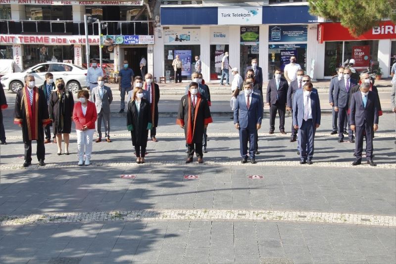 Program Atatürk Anıtı’nda yapılan törenle başladı. Törende sırasıyla Samsun Cumhuriyet Başsavcılığı, Bölge Adliye Mahkemesi Başkanlığı, Bölge İdare Mahkemesi Başkanlığı, Samsun Barosu ve Noterler Odası çelenkleri Atatürk Anıtı’na sunuldu. Saygı duruşu gerçekleştirildi ve İstiklal Marşı okundu.