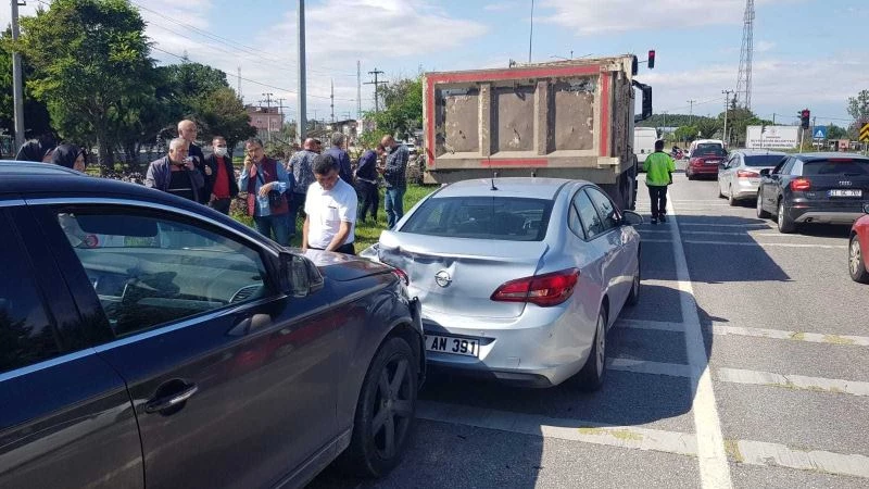 Samsun’da kamyon ve 2 aracın karıştığı zincirleme kaza maddi hasarlı olarak atlatıldı.