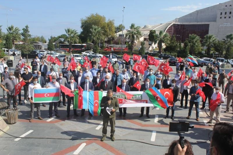 Samsun’da protokol üyeleri, sivil toplum kuruluşları ve vatandaşlar bir araya gelerek Azerbaycan’a destek verdi.