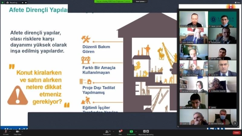 “Afete Hazır Türkiye Bilinçlendirme ve Eğitim Projesi" kapsamında Samsun Üniversitesi’nde (SAMÜ) Samsun AFAD İl Müdürlüğü tarafından online platform üzerinden “Afet Farkındalık Eğitimi” gerçekleştirildi.