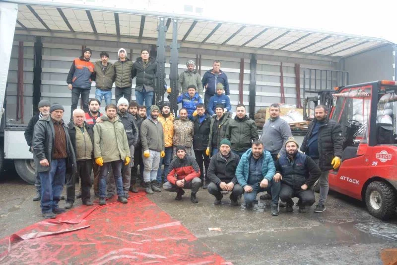 Ordu’nun Ünye ilçesinde bir araya gelen sanayi esnafı, deprem bölgesinde bulunan vatandaşların temel ihtiyaç malzemeleri ve barınmaları için 20 ailelik destek sağladı.