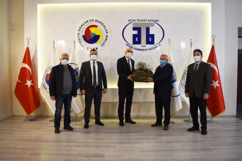 Ziyaretin ardından Aydın Sanayi ve Teknoloji İl Müdürü Ahmet Bayramer’e Aydın Ticaret Borsası Meclis Başkanı A.Bahri Erdel Aydın İnciri ve Yönetim Kurulu Başkanı Fevzi Çondur plaket takdim etti.