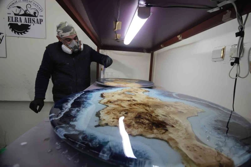Epoksi işleminin yapılan objenin hacmine göre değiştiğini ifade eden Behlül Çoban, “Küçük objeler genel anlamda 3 ila 4 saat içinde bitiyor. Masa ve sehpa türü malzemeler iki, üç gün arasında sürüyor. Müşteriye teslimi bir haftayı buluyor.”dedi.