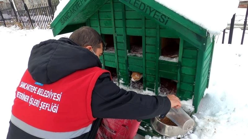 Soğuk hava dolayısıyla yiyecek bulmakta zorlanan sokak hayvanlarını unutmayan Sancaktepe Belediyesi, beslenme noktalarına mama ve yem bırakarak buradaki sulukları doldurdu.