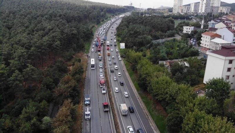 Sancaktepe TEM bağlantı yolunda 7 aracın karıştığı zincirleme trafik kazası havadan görüntülendi