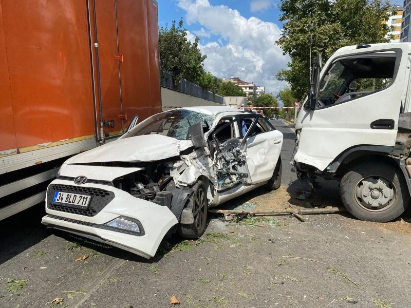 Sancaktepe’de feci kaza: Otomobil 2 kamyonetin arasında kaldı