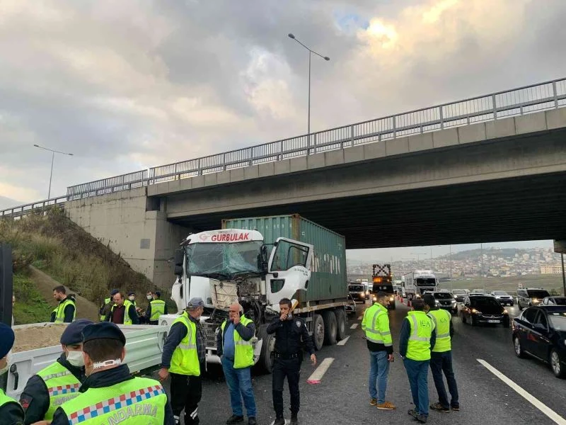 Kuzey Marmara Otoyolu Sancaktepe mevki’inde seyir halinde olan bir tır, kumaş yüklü kamyona arkadan çarptı. Kazada tır sürücüsü yaralandı.