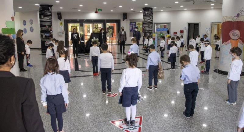 Sosyal mesafe kurullarının dikkate alındığı anma töreni saat 09.05’te siren sesleriyle başladı. Yüz yüze eğitime devam eden öğrencilerin öğretmenleri eşliğinde sınıflarında, online eğitime devam edenlerin ise canlı yayın ile katıldığı törende iki dakikalık saygı duruşunda bulunulmasının ardından hep birlikte İstiklal Marşı okundu.