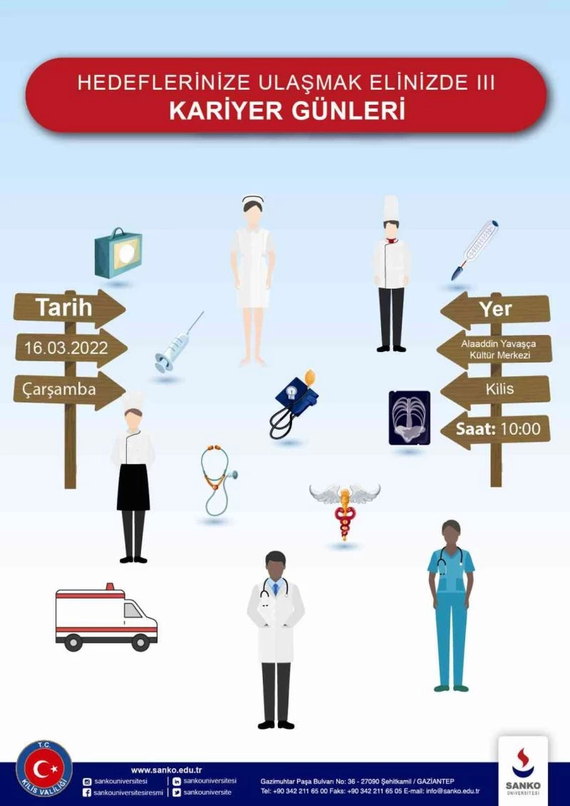 Kariyer günü 16 Mart 2022 tarihinde saat 10.00’da Kilis Alaaddin Yavaşça Kültür Merkezi’nde düzenlenecek.