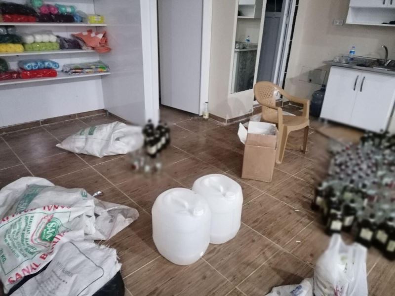 Şanlıurfa’nın Viranşehir ilçesinde sahte içki imal edilen bir iş yerine düzenlenen operasyonda 250 şişe sahte içki ve içki imal etmek için kullanılan malzemeler ele geçirildi.
