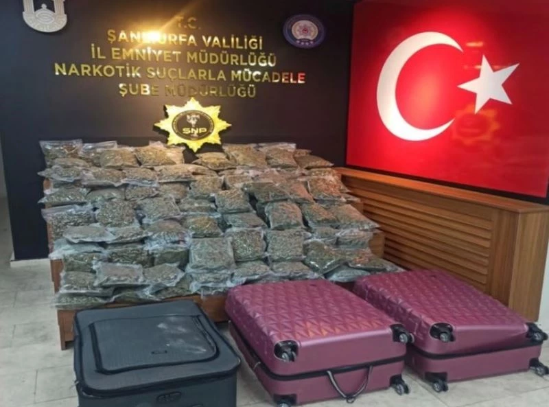 Şanlıurfa İl Emniyet Müdürlüğü Narkotik Suçlarla Mücadele Şube ekiplerinin uyuşturucu madde kullanımı ve satışıyla mücadele çalışmaları devam ediyor. Ekipler bu çerçevede şüphe üzerine 2 aracı durdurdu. Araçlarda yapılan aramada, valizler içerisinde 113 paket halinde 59 kilo 650 gram skunk ele geçirildi. Soruşturma çerçevesinde 5 şüpheli gözaltına alındı.