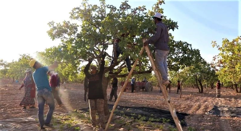 Türkiye’de fıstık üretiminde önemli bir yere sahip olan ve yaklaşık 20 milyon ağacın bulunduğu Şanlıurfa’da fıstık hasadı başladı. Sabah erken saatte bahçeye giden işçiler, fıstık hasadı yapmaya başladı. Ağaçlara çıkan gençler, üst dallardaki fıstıkları serilen çadırların üzerine silkelerken, kadın ve çocuklar ise alt dallarda kalanları kopartıyor. Olgunlaşma durumuna göre ayıklanan fıstıklar traktörlere konularak depolara taşınıyor.