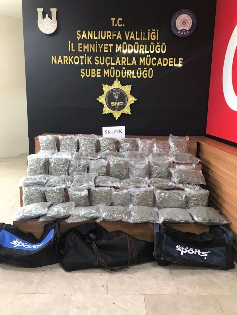 Şanlıurfa İl Emniyet Müdürlüğüne bağlı Narkotik Suçlarla Mücadele Şube ekipleri, , Şanlıurfa-Gaziantep karayolu üzerinde şüphe üzerine durdurdukları bir çekicide arama yaptı. Yapılan aramada 3 adet çanta içerisinde toplam 46 vakumlu paket halinde 25 kilo 300 gram skunk maddesi ele geçirildi. Olayla bağlantısı bulunan 1 şahıs, “uyuşturucu madde yapmak ve nakletmek” suçundan gözaltına alındı.