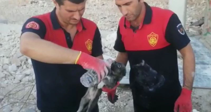 Şanlıurfa’da inşaat alanında meydana gelen çökme sonucu toprak ve kaya yığınının altında kalan yavru köpek, itfaiye ekiplerince kurtarıldı.