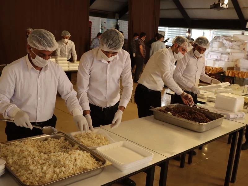 Bir yandan iftar için yemek hazırlıkları yapan ekipler diğer yandan sosyal yardım ekipleri ise ihtiyaç sahibi ailelere gıda kolisi ulaştırarak temel tüketim malzemelerini tedarik ederek evlerine kadar ulaştırıyor.