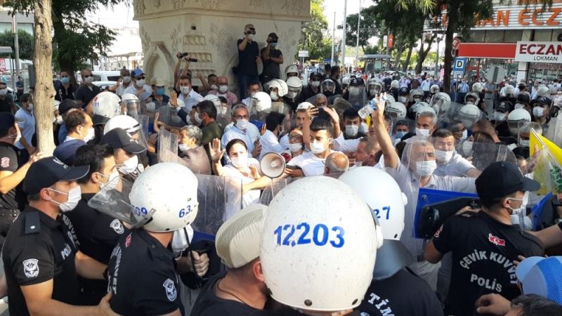 Şanlıurfa’da HDP’nin izinsiz olarak gerçekleştirmeye çalıştığı basın açıklamasına polis izin vermedi. Çıkan arbede sonrası 5 kişi gözaltına alındı.