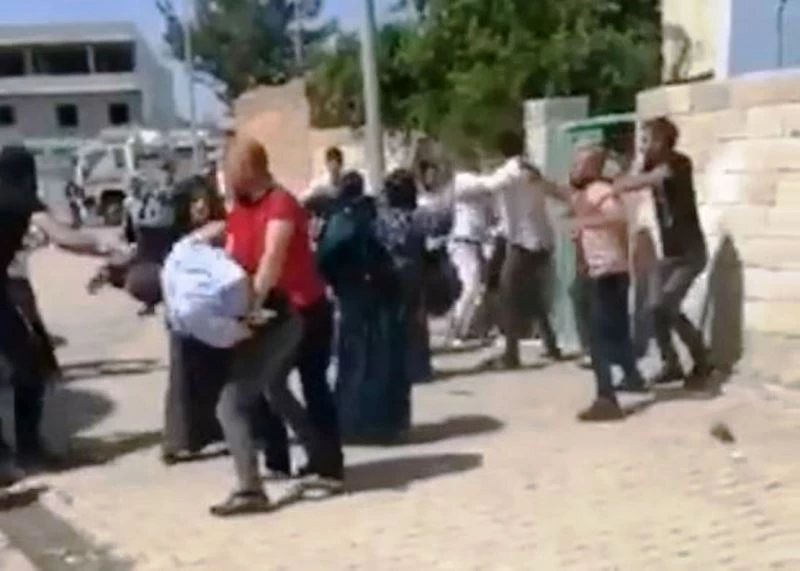 Şanlıurfa’nın Viranşehir ilçesinde iki aile arasında çıkan taşlı, sopalı kavgada 1’i ağır 6 kişi yaralandı. Kavga anı güvenlik kamerasına yansıdı.