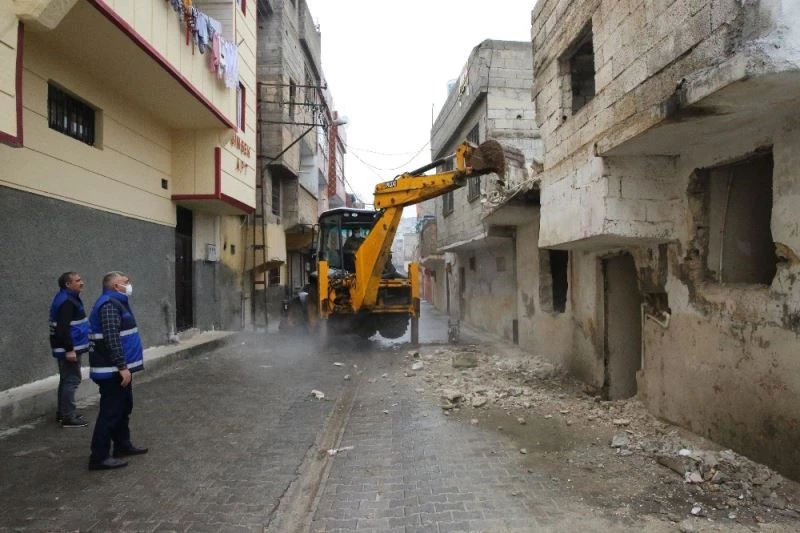 Şanlıurfa’nın Haliliye Belediyesi tarafından halkın sağlığını korumak ve mahallelerin güvenliğini sağlamak amacıyla metruk yapılar yıkılıyor.