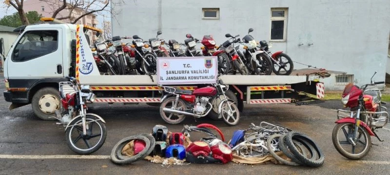 Edinilen bilgiye göre, Viranşehir Cumhuriyet Başsavcılığı koordinesinde, İl Jandarma Komutanlığı Kaçakçılık ve Organize Suçlarla Mücadele (KOM) ekipleri, örgütlü olarak yapılan motosiklet hırsızlığıyla ilgili soruşturma başlattı. Kent genelinde çalınan motosikletlerin ilçe kırsalındaki depolara getirildiğini ve buradan hem parçalara ayrılarak hem de şasi numaraları silinerek satıldığını belirleyen KOM ekipleri, 6 depoya eş zamanlı operasyon düzenledi. Adresteki aramalarda, çalıntı 13 motosiklet ile çok sayıda motosiklet parçası, bir miktar esrar ve uyuşturucu hap ile terör örgütü PKK simgesi bulunan bez parçası ele geçirildi.