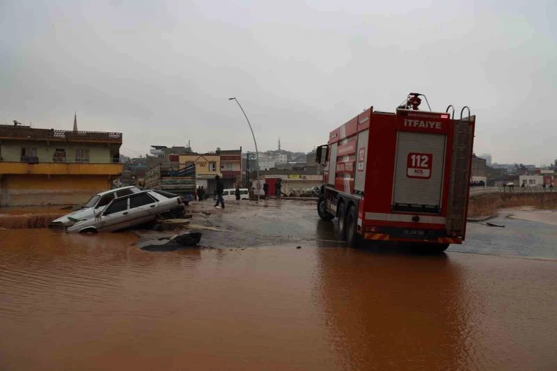 Şanlıurfa’da sele teslim olan Abide Köprülü Kavşağında çamurluya suya gömülen araçların çıkarılma çalışmaları sürüyor.