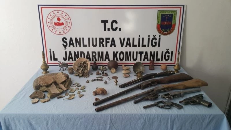 Şanlıurfa İl Jandarma Komutanlığı Kaçakçılık ve Organize Suçlarla Mücadele Şubesi ekipleri, merkez Eyyübiye ilçesinde bir kişinin evinin bodrum katında kaçak kazı yaptığı bilgisi üzerine adrese operasyon düzenledi.Evde yapılan aramada, tarihi eser niteliği taşıdığı değerlendirilen 7 yüzük, 3 sikke, 1 bakır tas, 3 heykel, 2 bakır ibrik, 141 obje ile 3 ruhsatsız tabanca, 4 ruhsatsız av tüfeği, 30 av tüfeği fişeği ele geçirildi.Kaçak kazı yaptığı ileri sürülen şüpheli M.S.’nin yakalanması için çalışma başlatıldı. Ele geçirilen objeler, Şanlıurfa Arkeoloji Müze Müdürlüğüne teslim edildi.