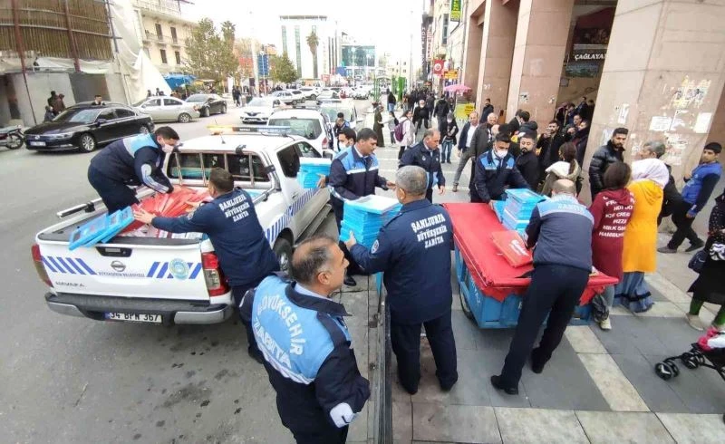Şanlıurfa’da zabıta ekipleri, seyyar satıcının sattığı son kullanma tarihi geçmiş 500 paket hediyelik çikolata paketine el koydu.