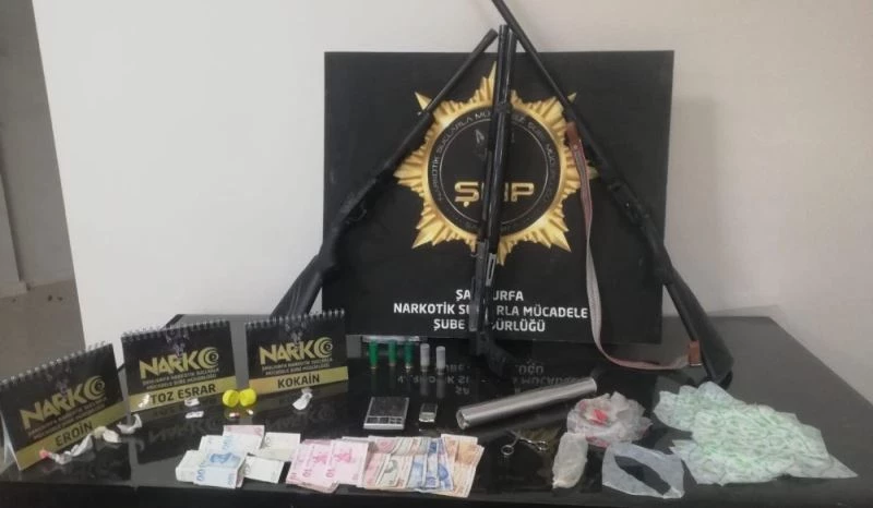 Edinilen bilgiye göre, Şanlıurfa İl Emniyet Müdürlüğü Narkotik Suçlarla Mücadele Şube Müdürlüğü ekipleri, Şanlıurfa merkez Karaköprü, Haliliye ve Eyyübiye ilçeleri ile Viranşehir ilçesinde uyuşturucu satıcılarına yönelik operasyon düzenledi. Eş zamanlı düzenlenen operasyonda 11 kişi gözaltına alındı. Yapılan aramalarda ise 70 kilo 850 gram esrar maddesi, 20 gram metamfetamin maddesi, 2 adet hassas terazi ile 3 adet ruhsatsız av tüfeği ele geçirildi.