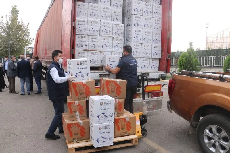 Şanlıurfa Büyükşehir Belediyesine ait gıda ve battaniye yüklü tır, İzmirli depremzedelere ulaştırılmak üzere yola çıktı.