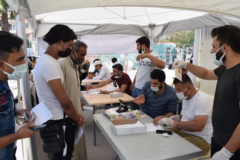 Akçakale Gümrük Kapısında kurulan mobil sağlık istasyonlarında genel sağlık muayeneleri yapılan ve Covid-19 aşısı olma imkanı sağlanan yüzlerce Suriyeli, güvenlik soruşturması ve arama işlemlerinin ardından ülkelerine geçiş yaptı.