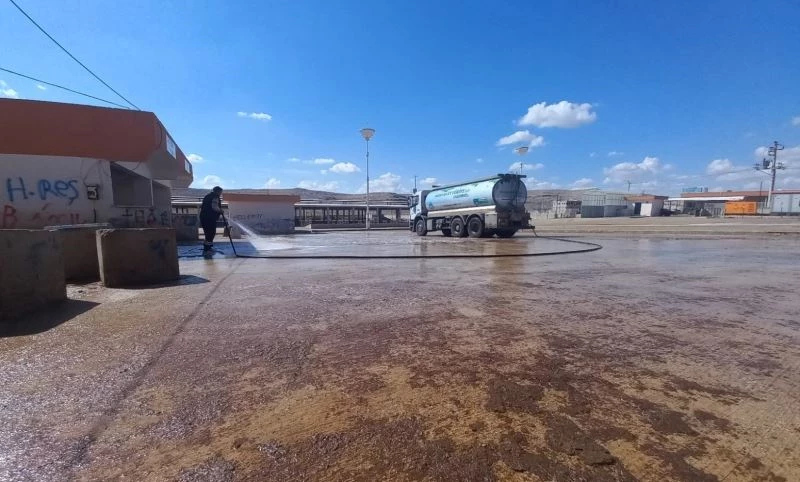 Şap hastalığına karşı tedbir amaçlı kapatılan Şanlıurfa Canlı Hayvan Pazarı, Eyyübiye Belediyesi temizlik işleri tarafından temizlenerek dezenfekte edildi.