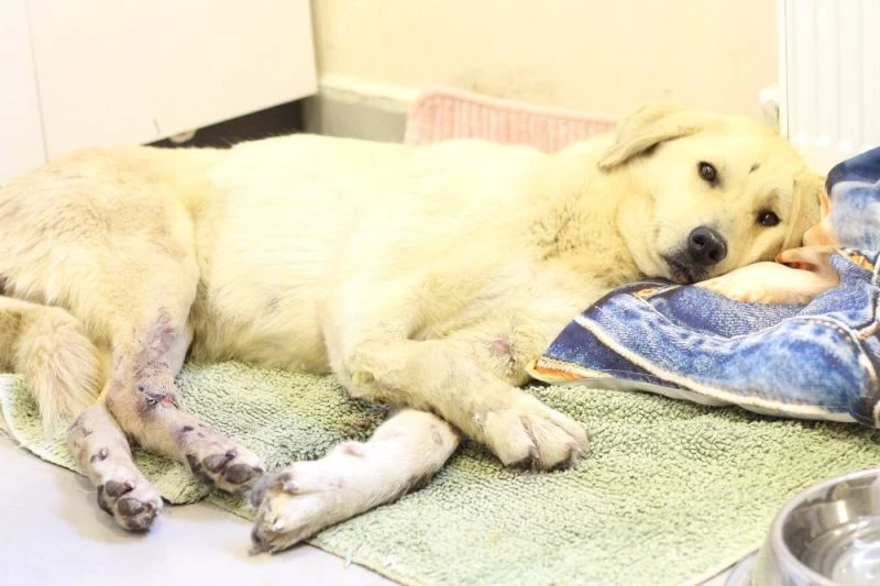 Ölümden dönen köpeğe Şans ismini verdiklerini ifade eden Cerrahi Uzm. Veteriner Hekim Şemsettin Taşkaya," Bu canımız yaklaşık 2-3 gün önce Kars’ta bir trafik kazası geçirmiş. Orada acil müdahalesi yapılmış. Dün gece hastanemize intikal etti. Sol üst kol kemik alttaki kemikte kırık var. Kalçada bir kırık var. Hamileymiş yolda gelirken düşük yapmış. Travmaya bağlı olabilecek komplikasyonlar. Kan değerlerinin normale gelmesini ve iki gün sonra operasyon yapmayı planlıyoruz. Kırıkların tamamen iyileşmesi bir ayı bulacak. Var olan şok tedavisi iki gün içinde bitecektir. Şu anda hayati riski yok gözüküyor. Hayvan severler tarafından medyada takip edilmiş, orada imkanlar uygun olmayınca buraya kadar getirilmiş" dedi.